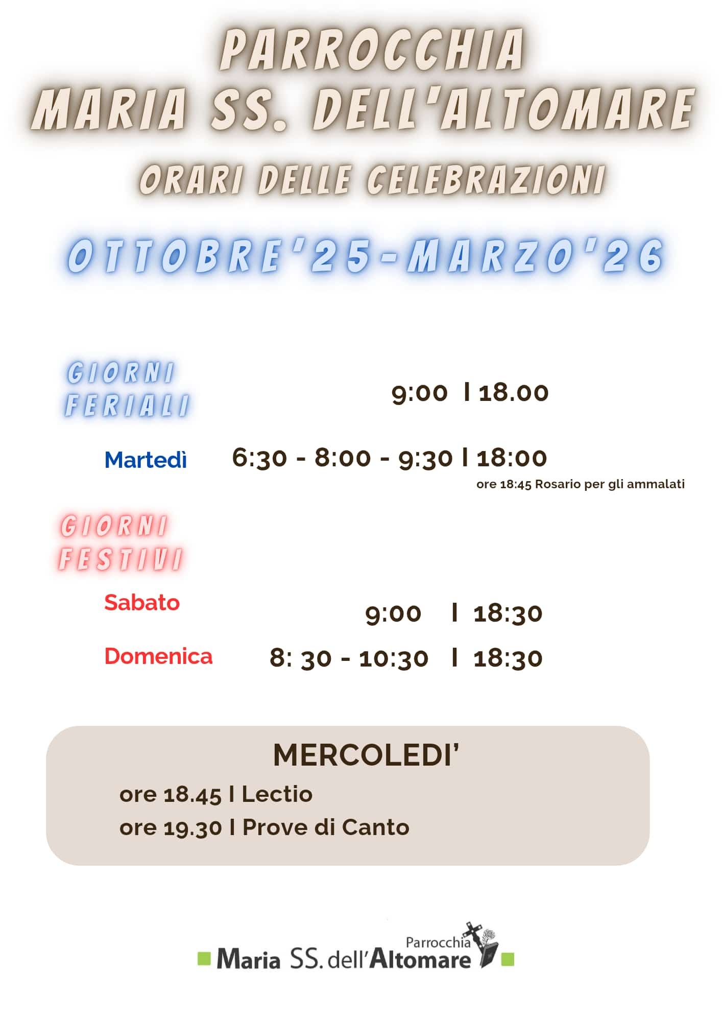 Il sito del Santuario Maria SS.ma dell'Altomare è molto giovane e sarà nostra cura aggiornarlo e arricchirlo continuamente. Se hai una proposta interessante, un'idea, un suggerimento, un errore da segnalare puoi scriverci una mail o contattare direttamente il parroco o il vicario.